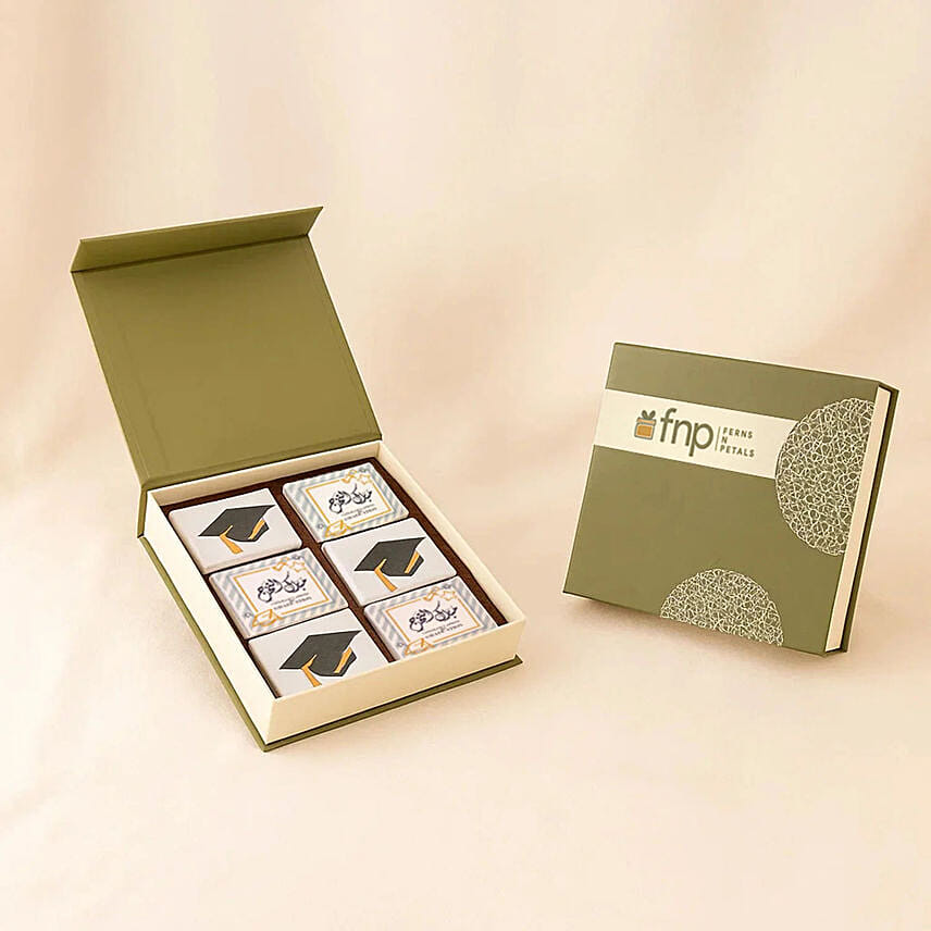 Enjoy this delicious assortment of the most delicious graduation chocolates, beautifully presented in an elegant box! Each box contains: