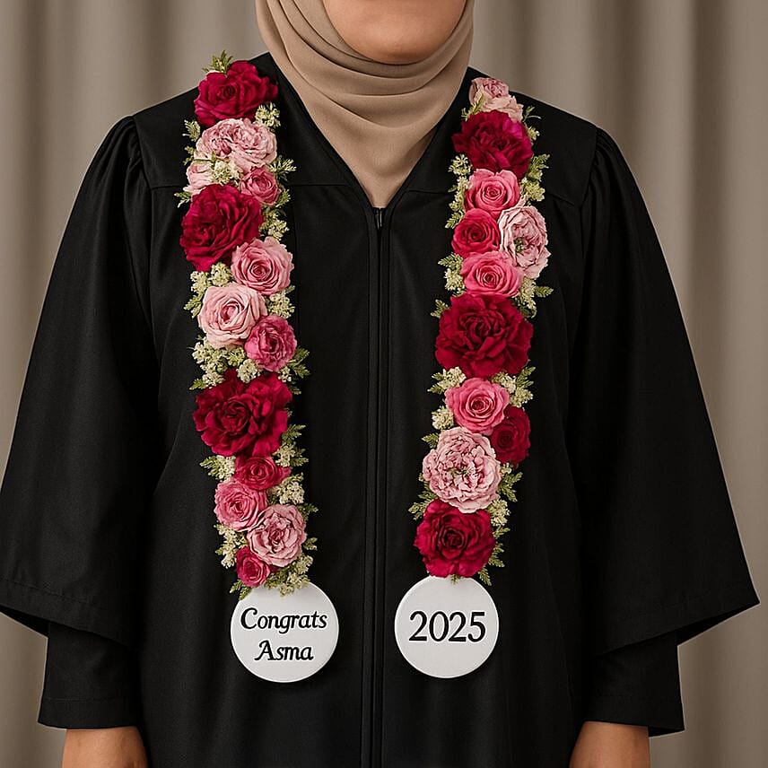 Product DetailsHonor our graduating heroes with the recognition they deserve with our unique collection of graduation gifts! The most beautiful bouquets of flowers, the most delicious graduation cakes, and cheerful balloon arrangements, in addition to gifts wrapped with pride and love. Make their day unforgettable with a special addition to this elegant graduation rose garland.