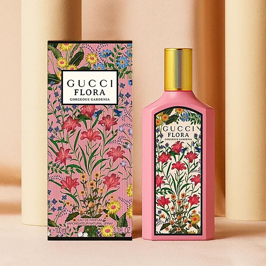 It opens with top notes of pear blossom and brown sugar that add a delicate sweetness. The heart of Gucci Flora reveals a delicate blend of white gardenia and grandifloral jasmine, while the base of patchouli creates a delicate sweetness.