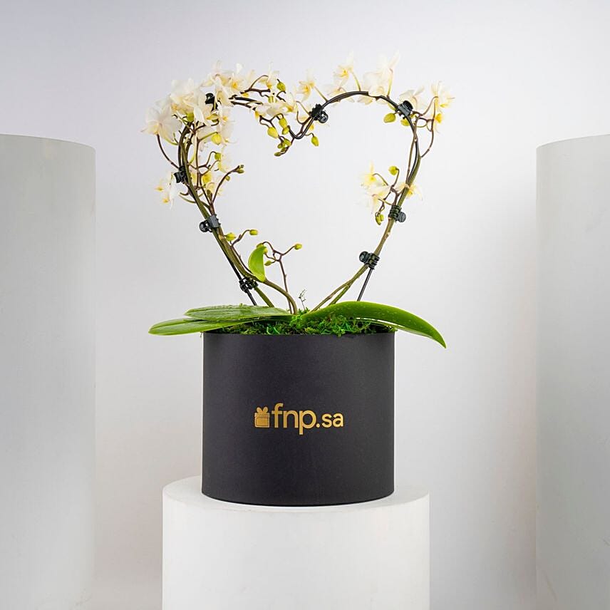 p styledirection ltrspan stylefont-size 0.875remExpress your love and admiration with this white orchid planted in the shape of a heart. This beautiful plant symbolizes purity and affection, making it the perfect gift for Valentines Day or any romantic occasion. It comes in an elegant black box decorated with dried moss to add a magical touch, making this orchid a timeless way to celebrate love.spanp
