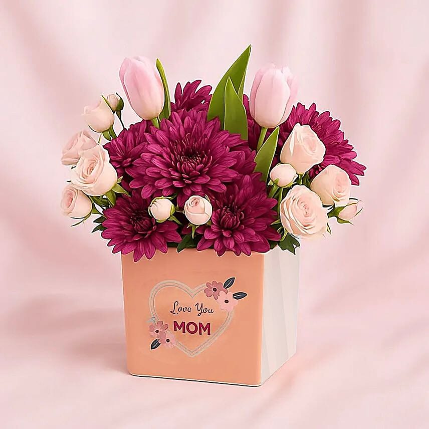 • Pastel Square Vase with “I Love You Mom” Design Reusable and Elegant for Home Decor home