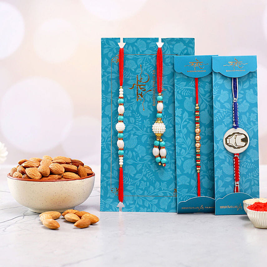 Kids Rakhi Duo And Blue Lumba Rakhi Set With Healthy Almonds