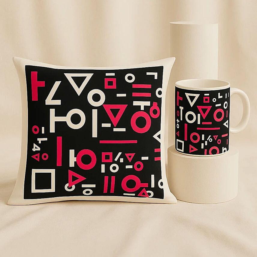 Squid Game pillow and mug set. A fun and different touch to their everyday decor. A perfect birthday gift, or you can send this Squid Game gift set as a graduation gift or other greeting.