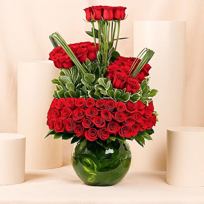 Product DetailsAn elegant vase filled with love expressed through vibrant red rose petals. It consists of 80 enchanting red roses, in a distinctive arrangement that reflects luxury and sophistication. Perfect for gifting on birthdays, anniversaries, housewarmings, or special romantic occasions.