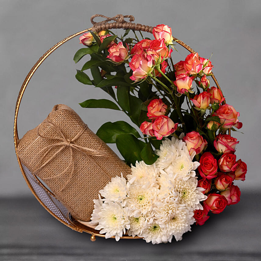 Mixed Flowers And Calvin Klein Perfume Metal Frame