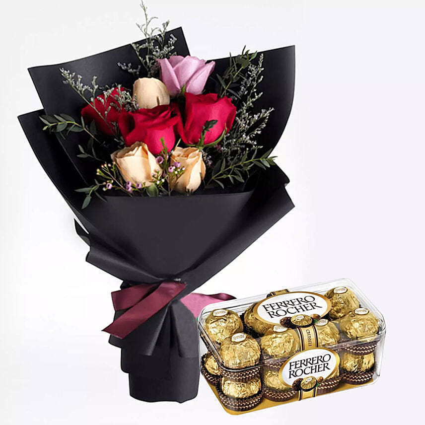 Mixed Roses Posy & Ferrero Rocher 16 Pcs