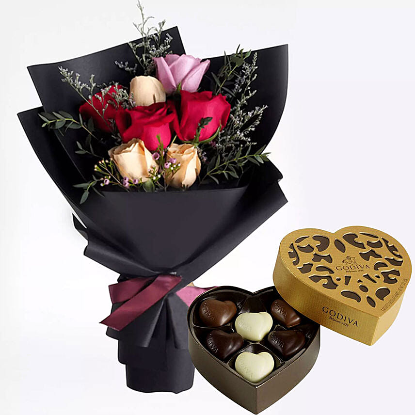 Mixed Roses Posy & Godiva Chocolates 250 gms