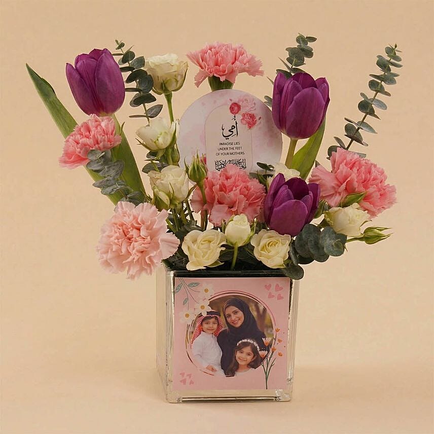 Celebrate the unique bond you share with your mother with our "Photo Customized Mother's Day Vase." This isn't just a floral arrangement; it’s a personalized keepsake designed to tell your story. By integrating your favorite family photograph into a premium floral display, you are gifting her a moment frozen in time. Elegant, sentimental, and deeply thoughtful, this customized vase is the ultimate way to show her that she is the heart of your home and your most precious memory.
