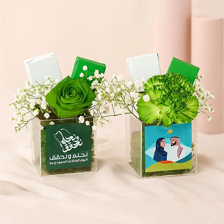 Celebrate Saudi National Day with complete happiness with delicious flower and chocolate boxes from National Day Distributions. Make the National Day special and unforgettable and celebrate the spirit of patriotism and belonging with this cute set of National Day gifts. Product Details