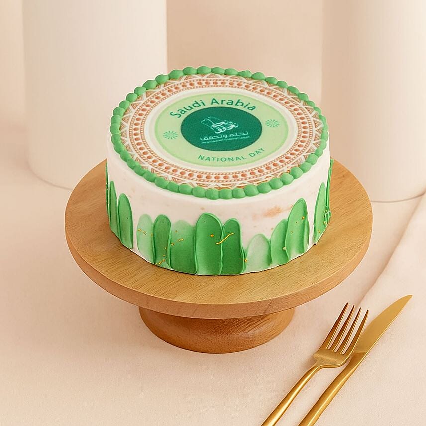 Celebrate Saudi National Day with complete pampering with this delicious Saudi-themed cake with red velvet flavor. The perfect cake for National Day celebrations. Make your National Day special and unforgettable and celebrate the spirit of patriotism and belonging with this wonderful masterpiece that blends the magical taste and the beauty of the art of baking.