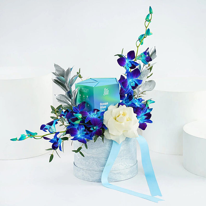 Ocean Blue Tea With Orchid N Rose Flower Box