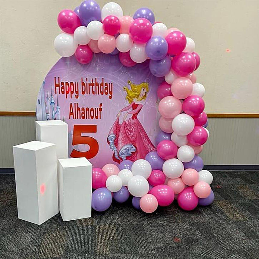 • Assortment made of Pink, White, Purple Balloons Arch