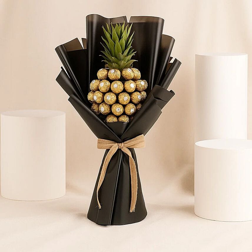 Product DetailsEnjoy wellness with your loved ones with a pineapple bouquet and Ferrero Rocher chocolates. Perfect for a sick visit or get well gift, or as a one-off gift for those who appreciate beauty.