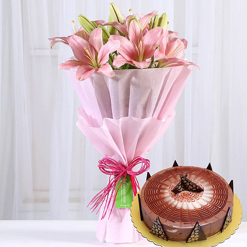 Pink Asiatic Lilies & Cappuccino Cake 12 Portions