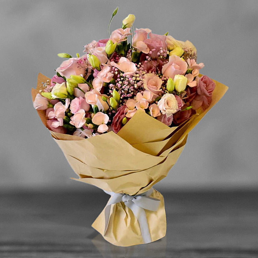 Pink Roses And Lisianthus Bouquet
