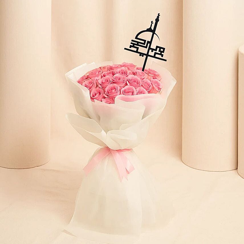 Product DetailsCelebrate Eid in style! A luxurious bouquet of 30 pink roses wrapped in elegant white paper with a special Eid greeting card. An ideal choice as an Eid gift idea for loved ones, family, and friends.