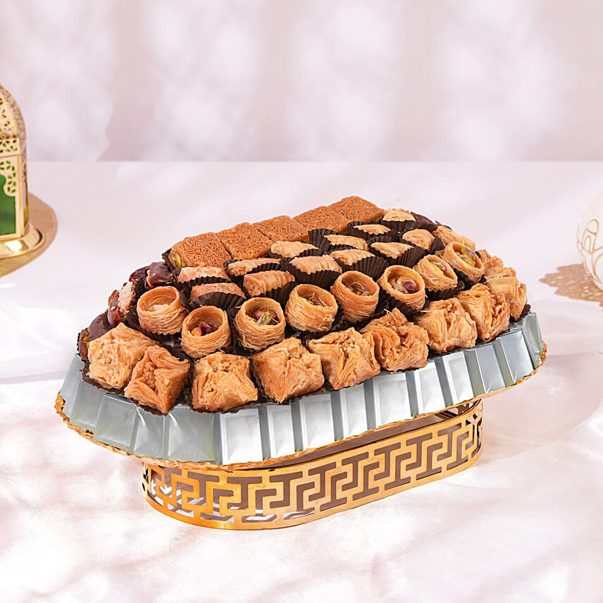 The atmosphere of Ramadan has become sweeter with delicious Ramadan dishes and Ramadan gifts from FNB. A luxurious collection of delicious oriental sweets elegantly arranged in a luxurious serving tray suitable for Ramadan occasions and gatherings.