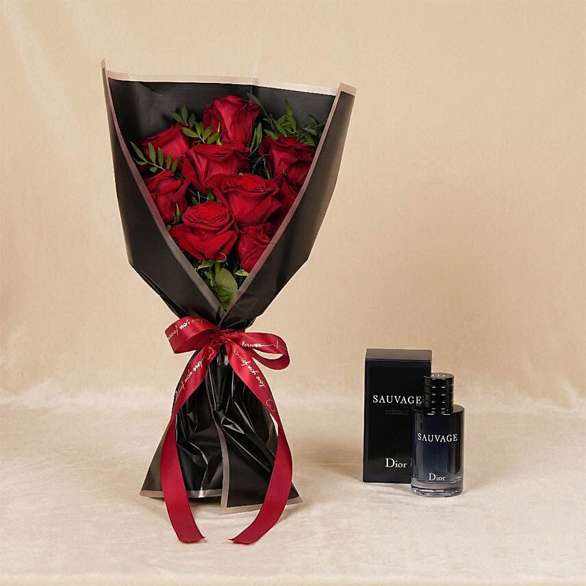 This refined arrangement pairs the passion of red roses with the unmistakable character of a luxury men’s fragrance—creating a statement gift with lasting impact.