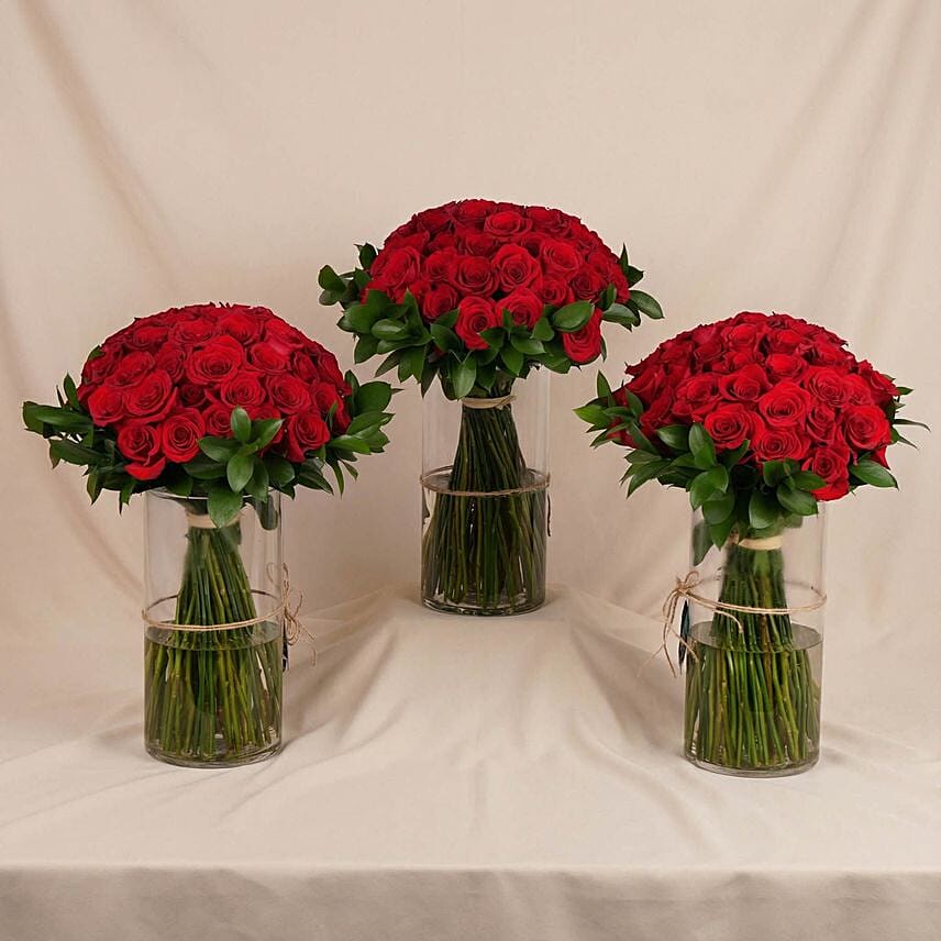 Make a bold statement of love with this luxurious triple red roses vase arrangement, designed to express passion on a grand scale. The rich red blooms are expertly arranged to create a powerful visual impact, transforming any space into a celebration of romance and elegance.