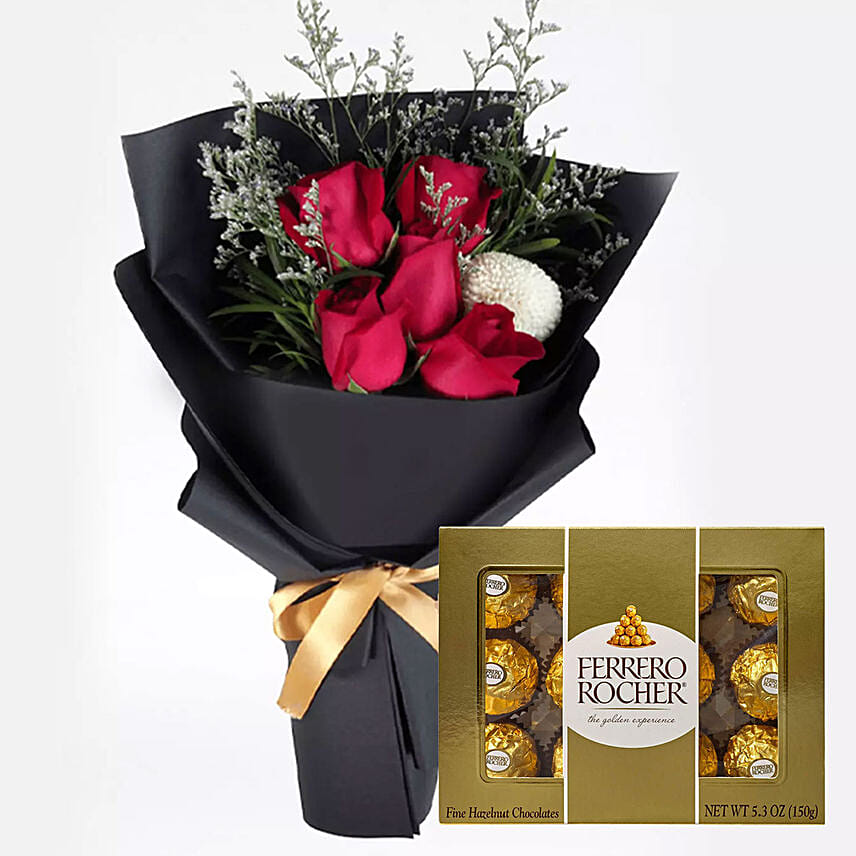 Romantic Red Roses & Ferrero Rocher 12 Pcs