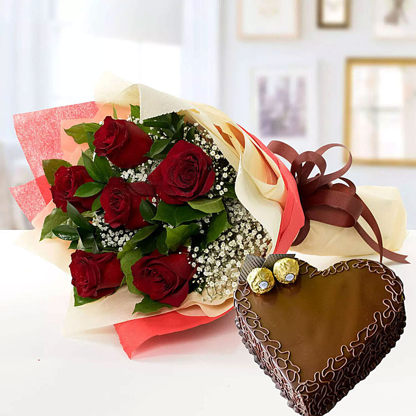 Roses & Chocolate Cake Combo