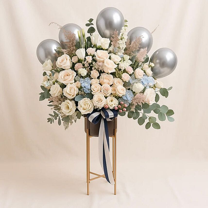 Roses N Balloons Golden Stand