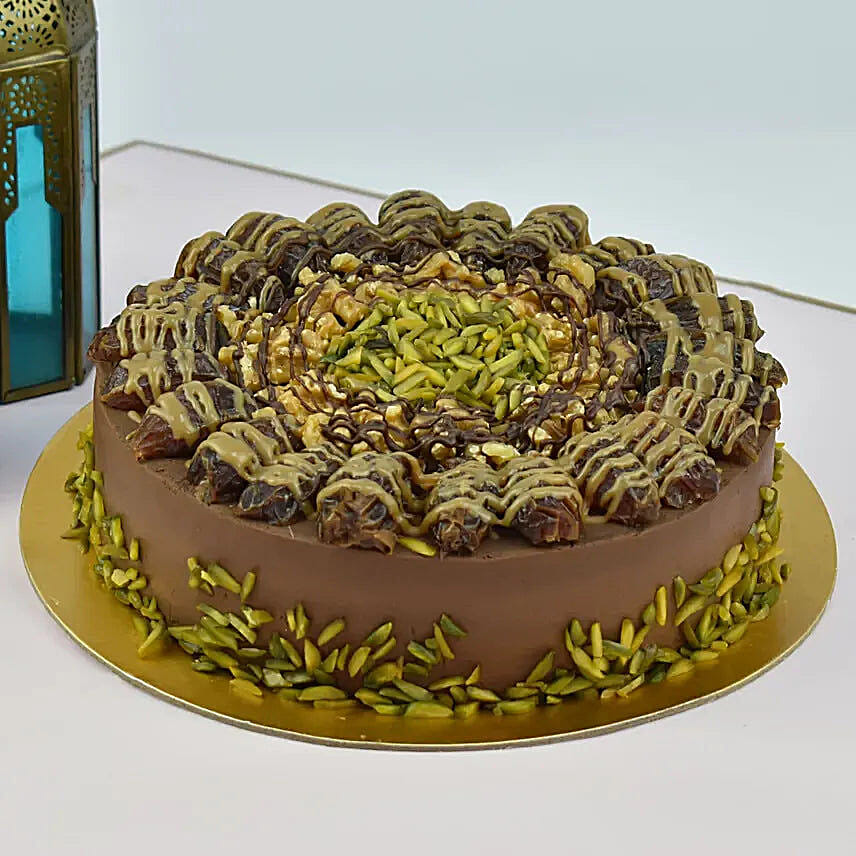 • Ingredients: Dates, walnuts, and pistachios with a layer of chocolate ganache and Medjool dates