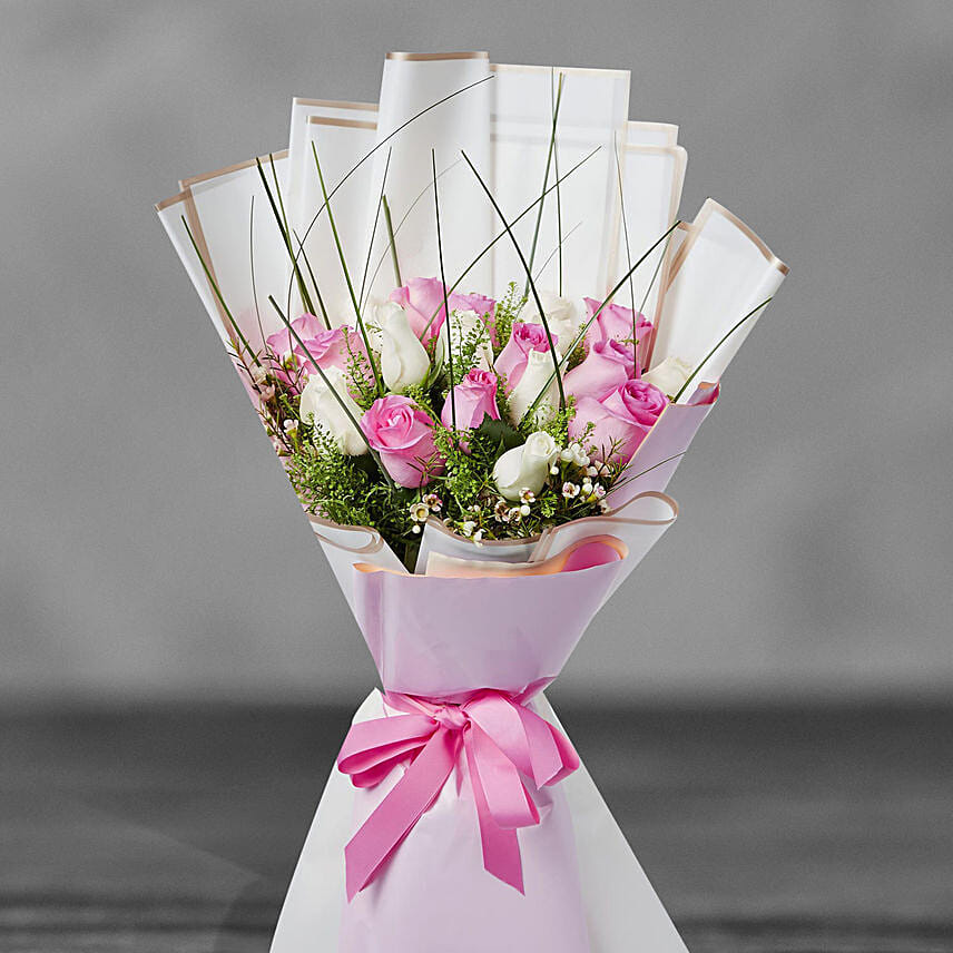 Serene Mixed Roses Beautifully Tied Bouquet