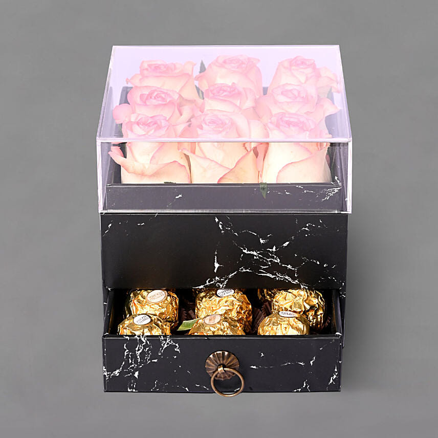 Shaded Pink Roses And Ferrero Rocher Box