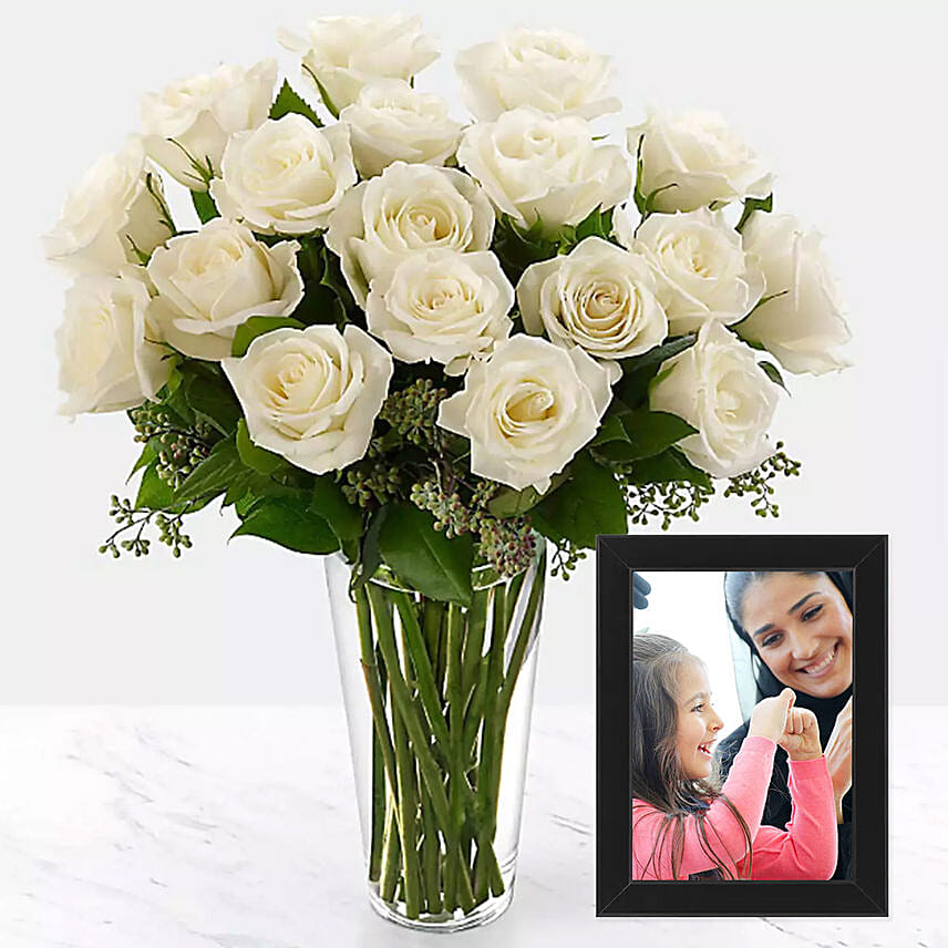 • 18 White Roses in Glass Vase