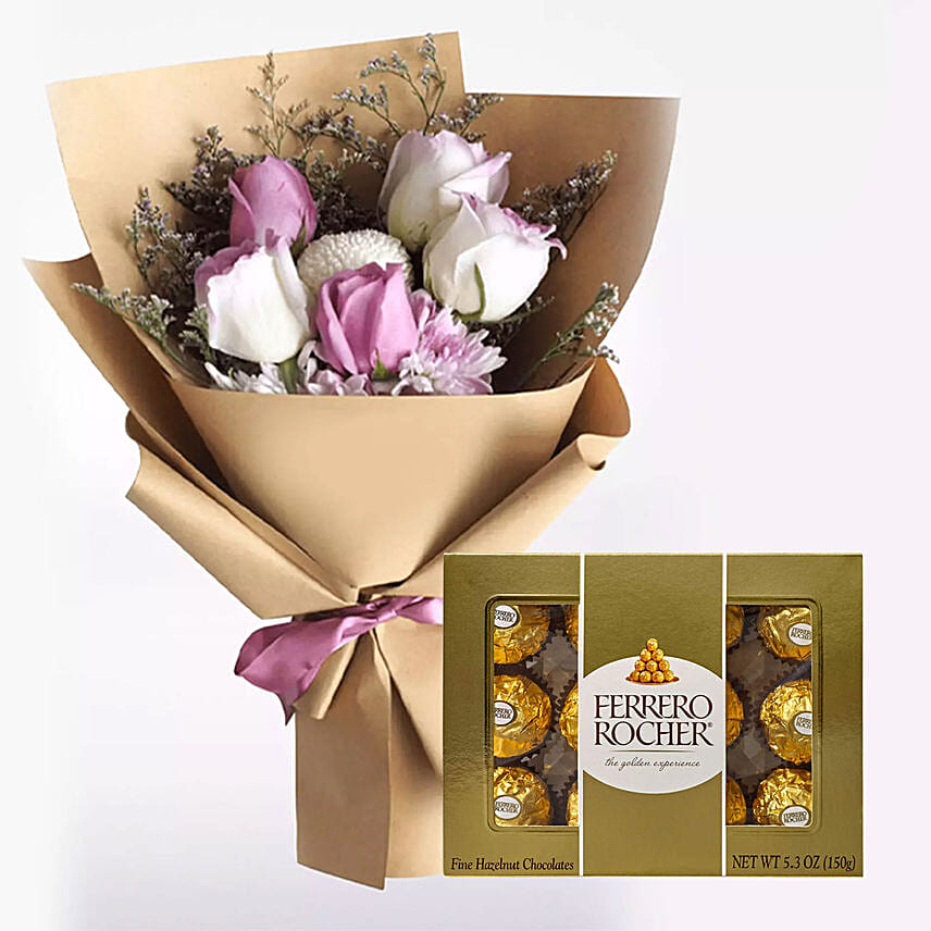 White Purple Flowers & Ferrero Rocher 12 Pcs
