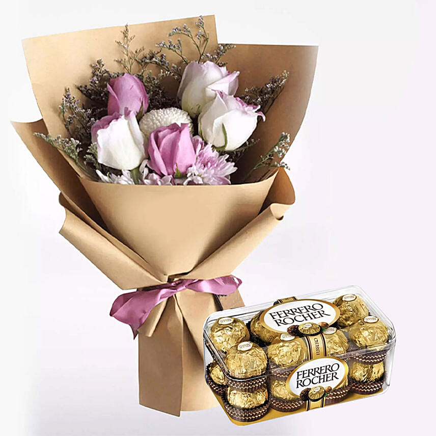 White Purple Flowers & Ferrero Rocher 16 Pcs