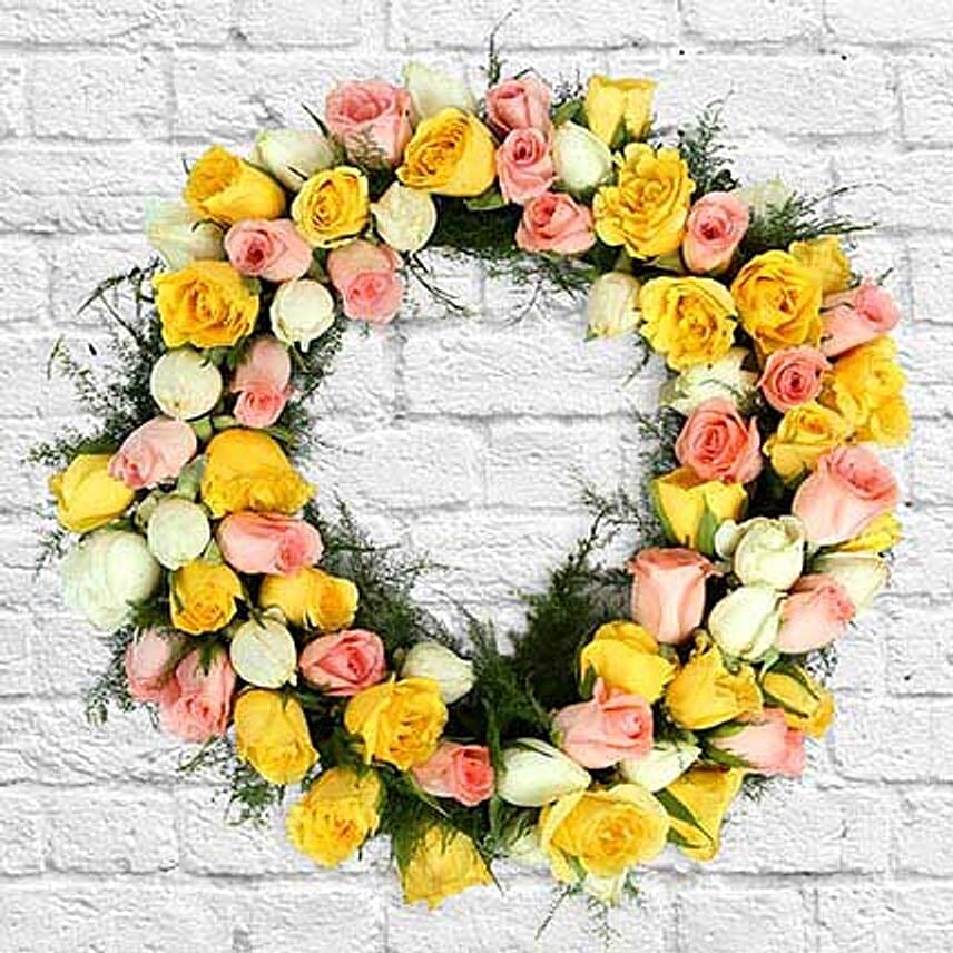 A wreath is always a lovely home décor item when you have to renovate your home for an upcoming festive season. This wreath of pink, white, and yellow roses would be a lovely ingredient to enhance the great looks of your home.