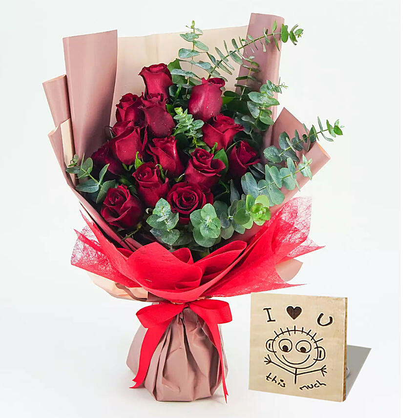 13 Red Roses Bouquet With I Love You Table Top For Valentines