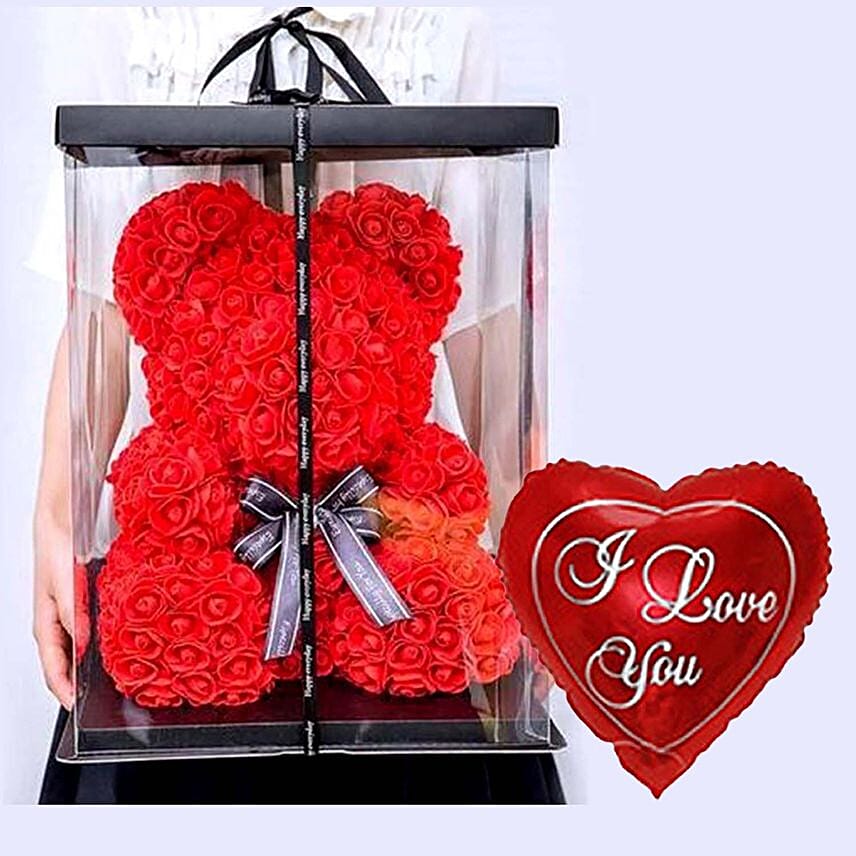 Artificial Roses Red Teddy Bear With I Love You Balloon For Valentine