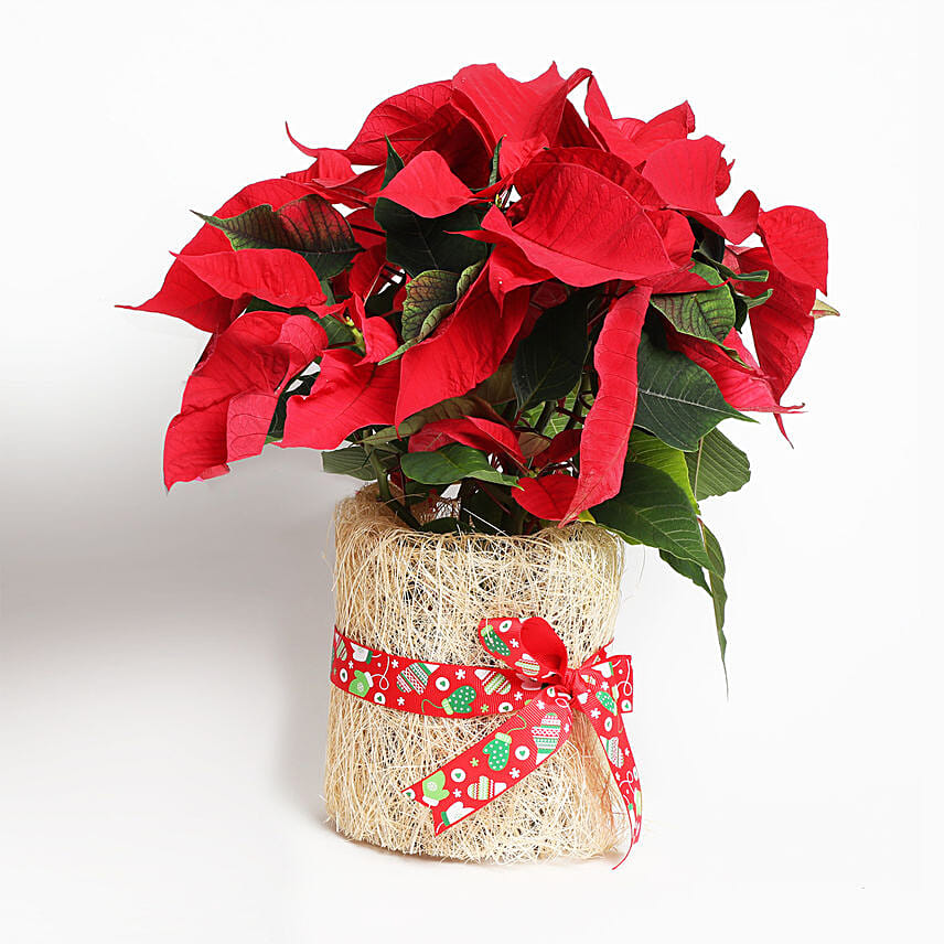 Beautiful Poinsettia Plant In Natural Jute