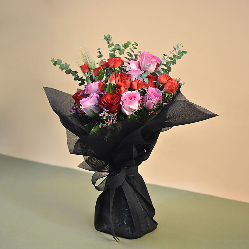 Black Jute Wrap Roses Bouquet