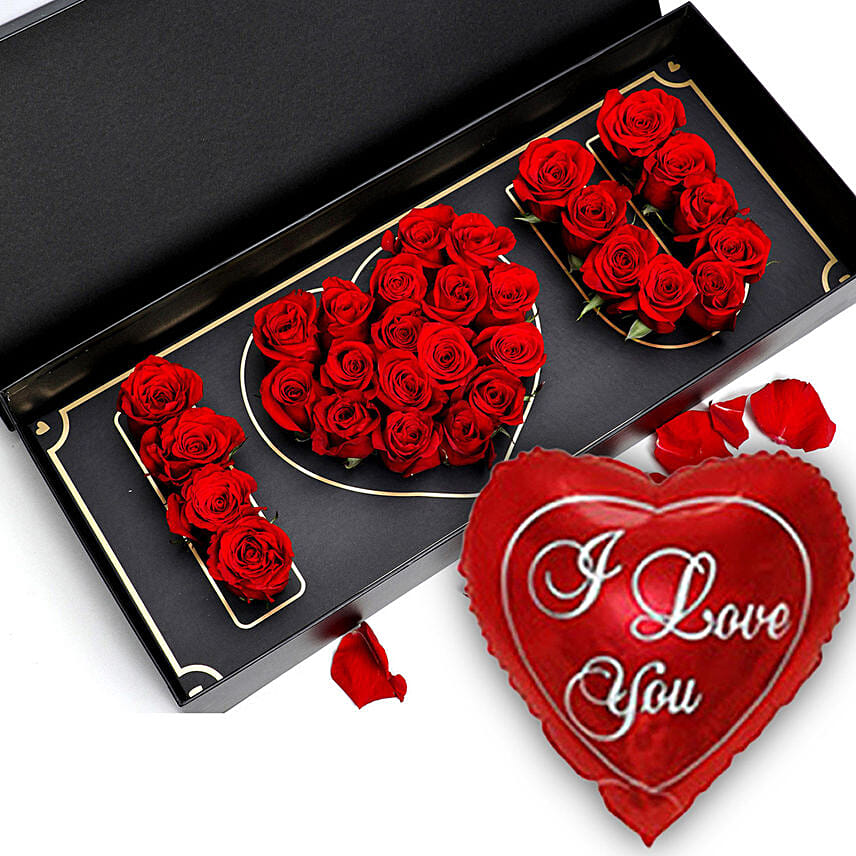 Box Of I Love You Roses With I Love You Balloon For Valentines Day