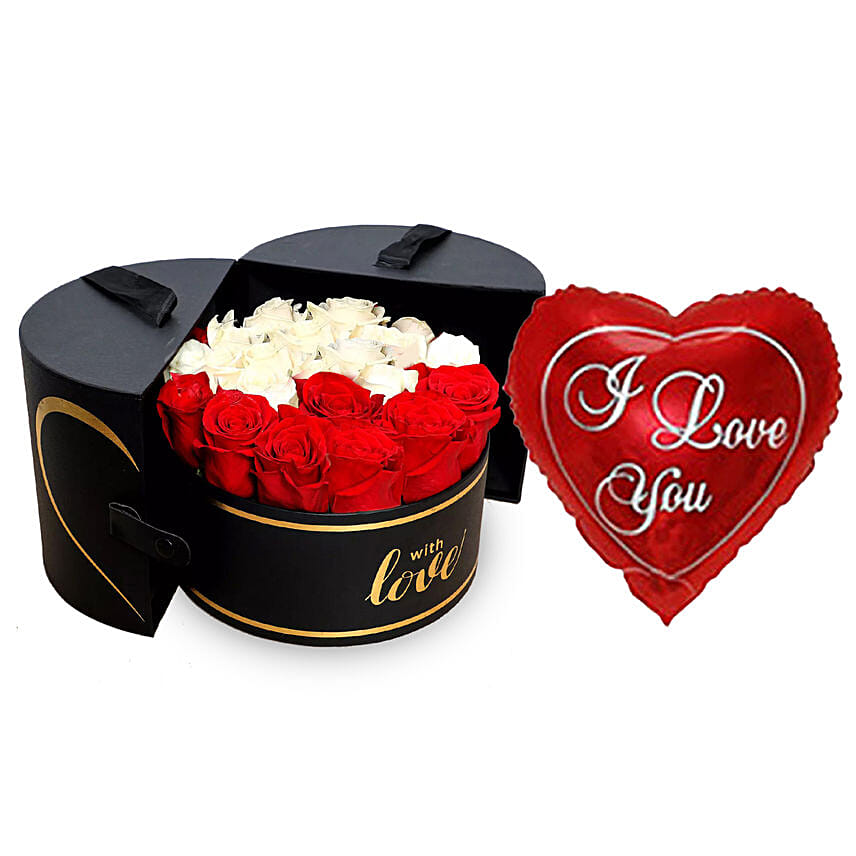 Charming Red & White Roses With I Love You Balloon For Valentines