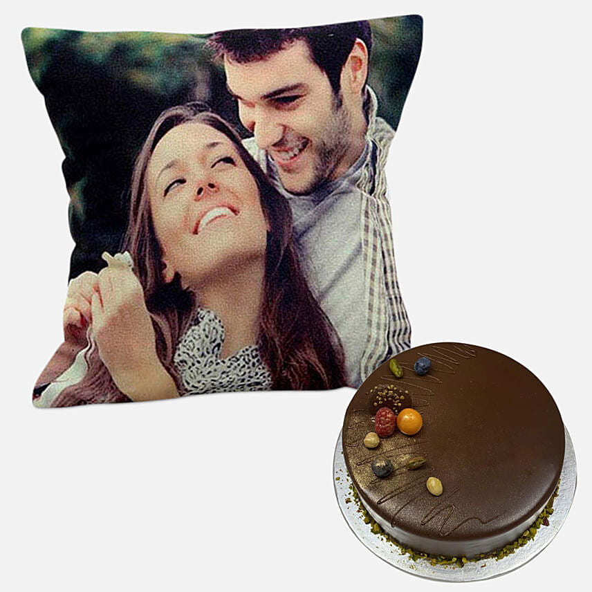 Chocolate Cake With Personalized Cushion