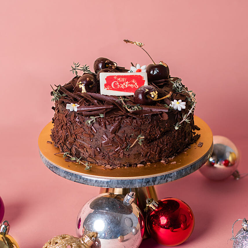 • Experience the decadent taste of Black Forest cake made with the finest of ingredients, perfect for a holiday season celebration. Send X-Mas wishes with this Christmas theme cake which will surely make your loved ones feel extra special.