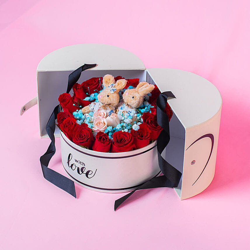 Flowers With Rabbit Box Arrangement