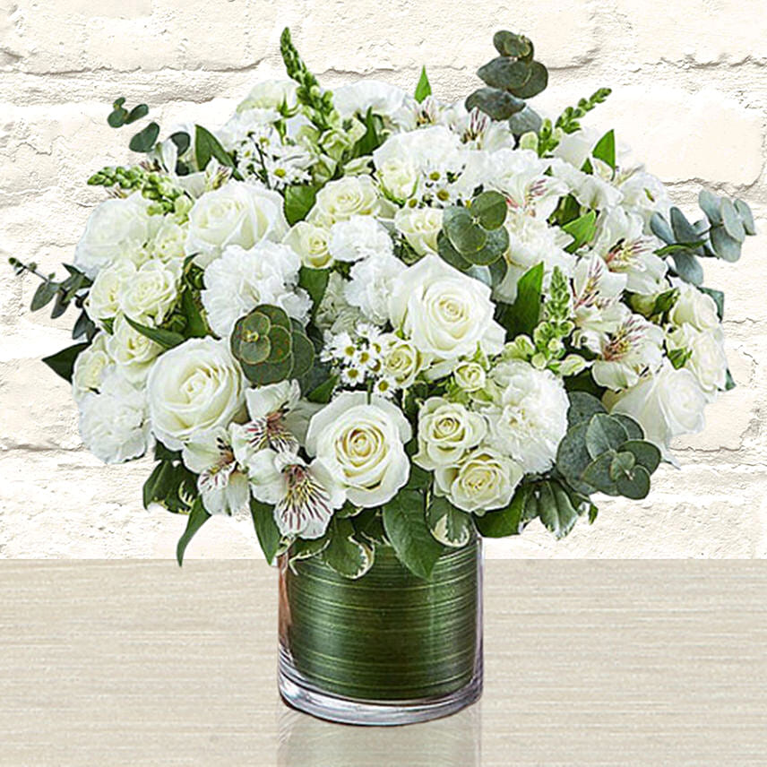 Glamorous White Flowers Vase Arrangement