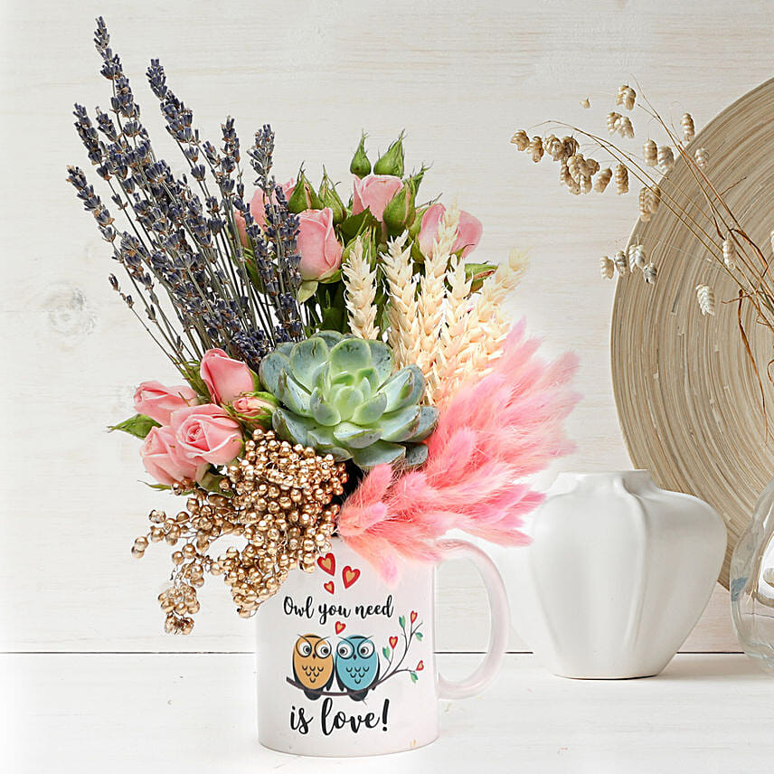 Lovely Floral Arrangement In Owl You Need Is Love Mug