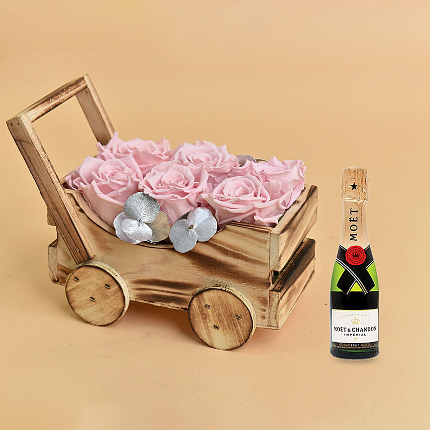 Lovely Forever Roses In a Cart For Valentine With Moet Champagne