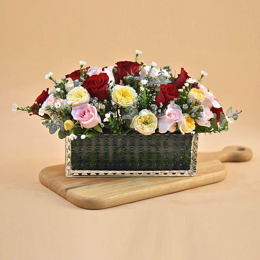 Mixed Roses Rectangular Vase