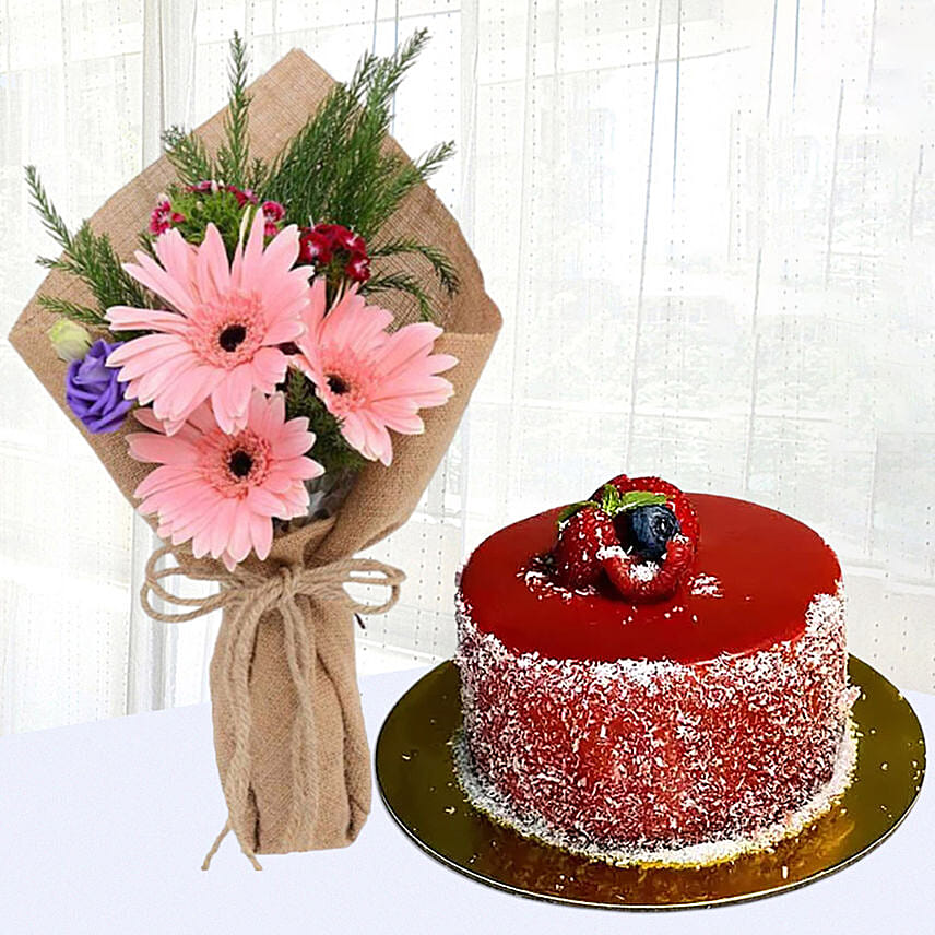 Pink Gerberas Chic Bunch With Mini Mousse Cake