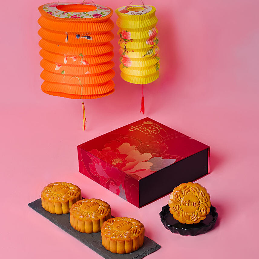 Pure White Lotus Paste Mooncakes And Traditional Lantern Set