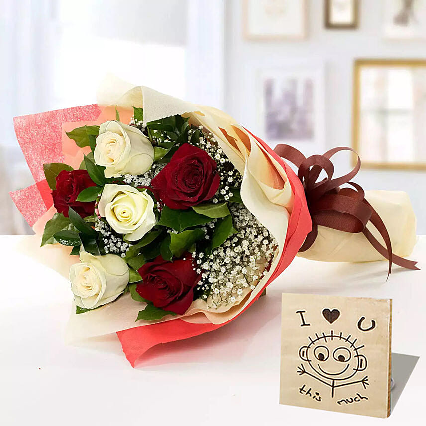 Red N White Roses With I Love You Table Top