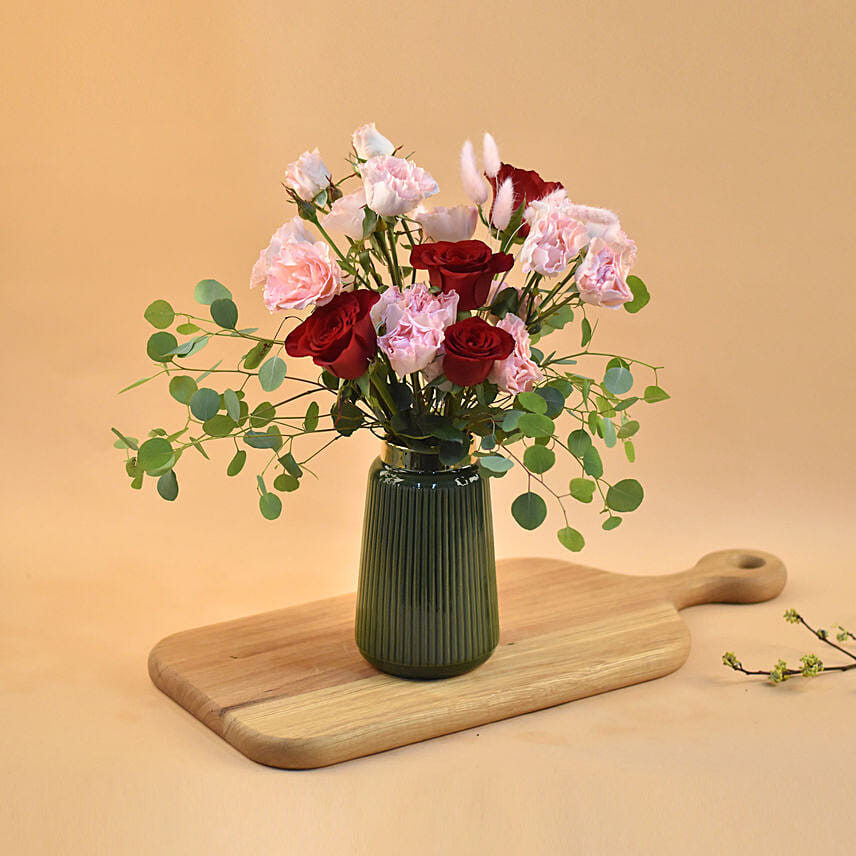 Red & Pink Roses Designer Vase